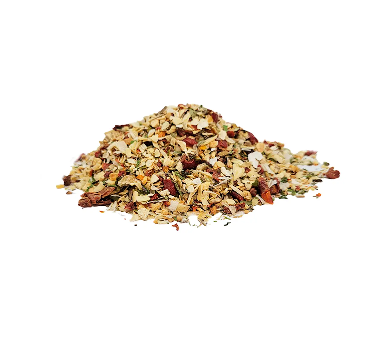 COMPOSIÇÃO Alho desidratado,cebola granulada, tomate em flocos, pimentão vermelho em flocos, orégano, salsa desidratada, Sal rosa do himalaia, cebolinha desidratada,manjericão desidratado e mostarda em grãos